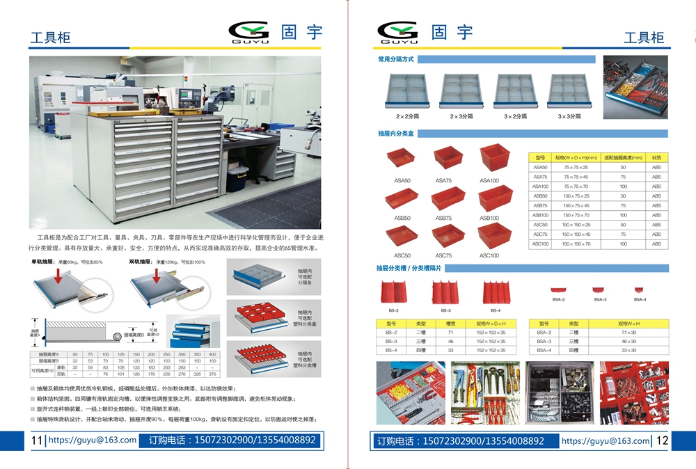 工具柜的介紹   工具柜適用于工具、刀具、零部件在生產(chǎn)現(xiàn)場中的定置管理,使您的物品存取工作真正做到準(zhǔn)時(shí)、準(zhǔn)確、高效、低耗。   平時(shí)見到的工具柜,通常用來放置工具,只是將絕緣工具規(guī)整而已,現(xiàn)在推出了除了普通工具柜的放置功能,更增加了除濕和高溫預(yù)警功能,是一款實(shí)用性相當(dāng)高的工具柜。   工具柜的特點(diǎn):   1.高強(qiáng)度的結(jié)構(gòu)設(shè)計(jì)和特殊的噴粉表面處理工藝,能適應(yīng)工廠較復(fù)雜的工作環(huán)境。   2.裝有軸承的導(dǎo)軌,保證單個(gè)抽屜承受額定載荷時(shí)亦能輕松順暢開合。   3.抽屜內(nèi)自由調(diào)節(jié)的隔板,能使您隨意分隔儲物空間。   4.全寬型鋁合金抽屜把手及可換的標(biāo)簽,美觀,方便,實(shí)用。   5.先進(jìn)的抽屜安全扣設(shè)計(jì),保證抽屜在關(guān)閉后不會意外滑出。   6.配有安全擋板設(shè)計(jì),保證抽屜打開后百分之百不會掉落。   7.采用具有國際先進(jìn)水平的鎖具, 鎖具先進(jìn),只用一把鑰匙就能鎖上的抽屜,保證物品安全。   8.可自由選擇配置不同高度的抽屜,充分滿足客戶的需求。   9.柜體底部墊腳,保護(hù)柜體在放置或移動(dòng)時(shí)不受損壞,方便用叉車搬運(yùn)。   10.多種表面顏色,滿足用戶整體布置的要求。   11.根據(jù)需要可自由選擇配置不同高度的抽屜,充分滿足生產(chǎn)現(xiàn)場的需要。   12.可以配置帶有防油膠墊的頂框,保護(hù)放置物品不受損害以及防止物品滑落。