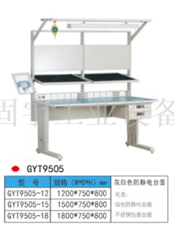 結(jié)構(gòu) 1、防靜電工作臺臺面一般由防靜電三聚氰胺高壓裝飾層壓板(俗稱防靜電防火板)為表面材料與木質(zhì)材料復(fù)合制成。木質(zhì)材料一般為刨花板,通過嵌入導(dǎo)電體如鋼柱,再通過接地線接地,這樣桌面靜電荷通過接電線順利地泄放到大地。2、也有一些工作臺是不銹鋼的,桌面需要鋪一塊防靜電桌墊,桌墊通過接點(diǎn)線連入大地,達(dá)到瀉放靜電的效果。3、防靜電工作臺就是能滿足用戶的普通工作臺功能的基礎(chǔ)上,增加了防靜電功能,也就是如何將靜電瀉放掉!潔凈工作臺 潔凈工作臺是一種層流局部空氣凈化設(shè)備,采用可調(diào)風(fēng)量風(fēng)機(jī)系統(tǒng),在調(diào)節(jié)風(fēng)機(jī)工作臺后,可使?jié)崈艄ぷ鲄^(qū)的風(fēng)速始終保持在理想范圍內(nèi)。(可根據(jù)客戶要求配備壓力表、可隨時(shí)掌握高效過濾器阻力變化情況。 工作臺結(jié)構(gòu)特點(diǎn) 可分為輕型,中型,重型工作臺。1、采用優(yōu)質(zhì)鋼板專用模具用輥扎工藝成型,并通過先進(jìn)的自動(dòng)化靜電噴涂工藝進(jìn)行表面處理。 2、根據(jù)用戶的承載要求,可選擇不同形狀的桌腳。3、根據(jù)用戶要求,工作臺桌面可選擇:高分子復(fù)合桌面、防火板桌面、不銹鋼包面、鐵板合成面、櫸木桌面、橡木層壓板左面、防靜電桌面、電木板貼面等 。4、桌上可配照明架、吊架、擱板、方孔掛板、百葉掛板、動(dòng)力電源插座、電器盒、零件盒掛條等,滿足用戶不同的需求。桌腳上預(yù)留安裝孔,方便客戶安裝電源插座。5、桌下可選配各種類型的工具柜,加裝工具柜后,更能合理地利用空間,存放保護(hù)工具。可直接在工作桌上加裝臺鉗。滿足用戶裝載物品的需求。6、各種類型的工作桌均采用組合式設(shè)計(jì)、拆裝組合容易且穩(wěn)固、耐用。